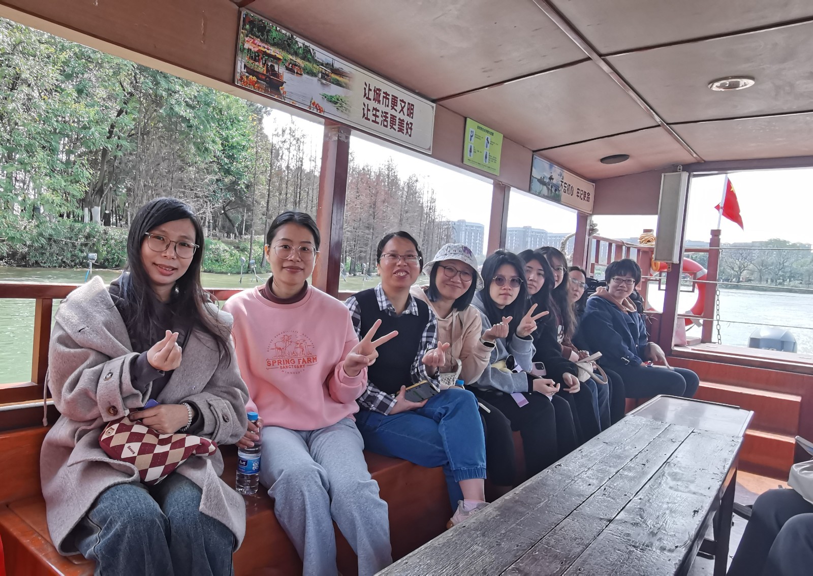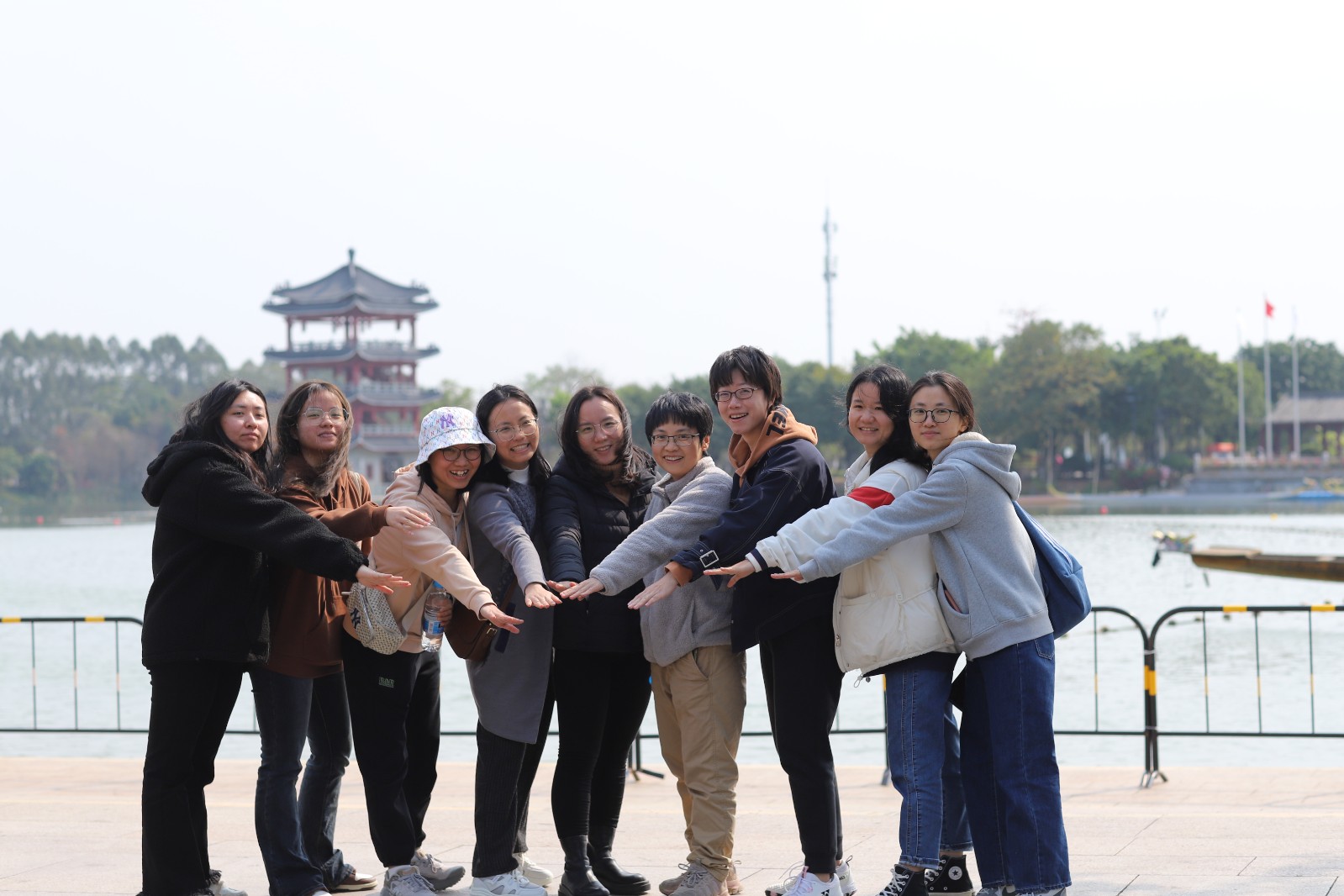 此次活动中,大家还乘坐古色古香的观光船游览华阳湖畔。华阳塔矗立岸边,白鸟轻点湖面,水波荡漾,谈笑风生,大家说起工作与生活的趣事,拉近了距离,增进了友谊,更培养了默契。
