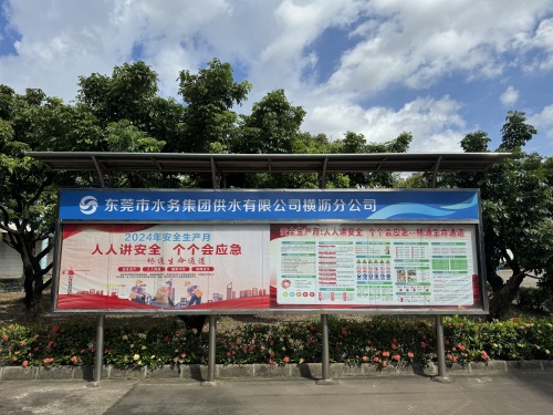 供水公司各级单位在办公室、食堂、生产岗位等醒目位置张贴或悬挂安全生产月相关内容的安全标语、宣传画、横幅等,广泛传播安全理念和安全知识。