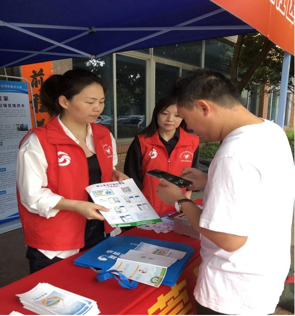 志愿者为市民介绍微网厅各项功能,并细心教导如何在线办理用水业务。现场市民表示,先进用水业务办理方便, 为供水公司的安全、便捷、智能服务点赞。