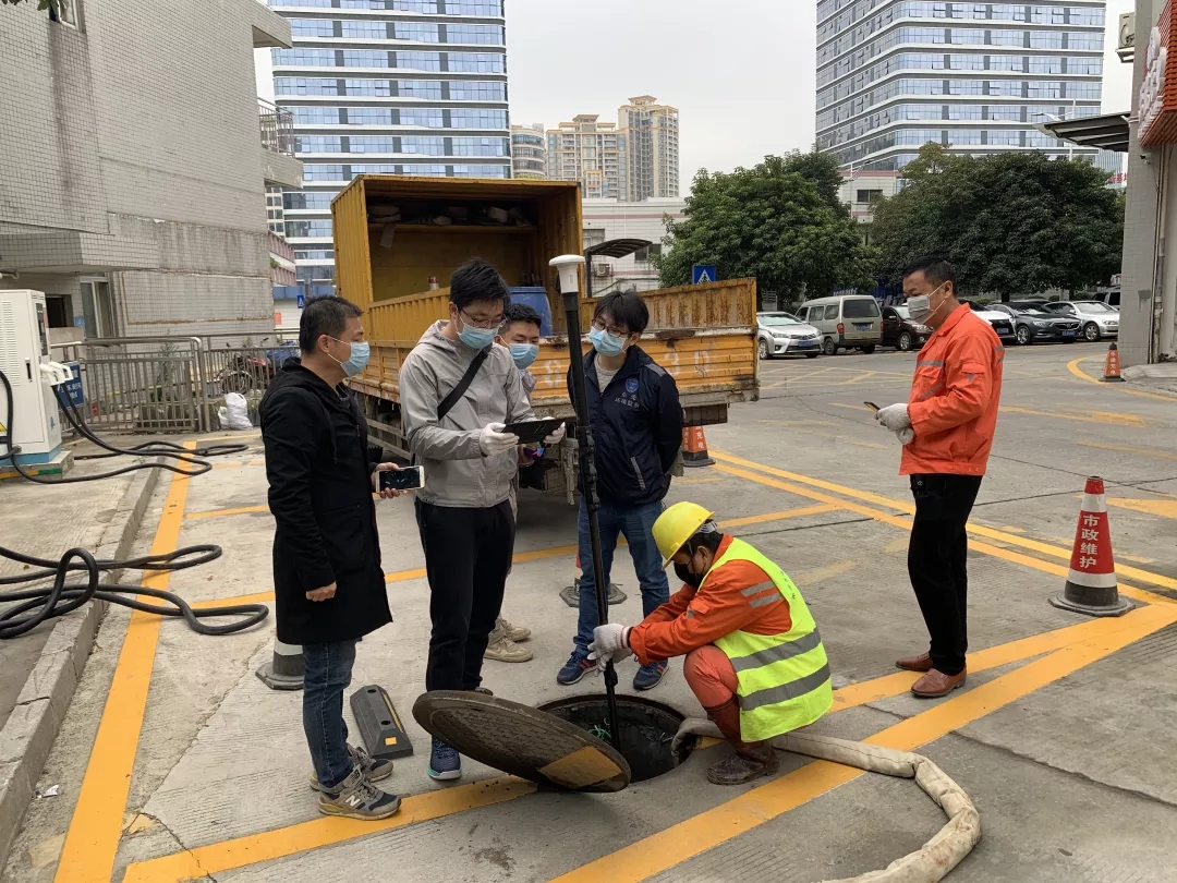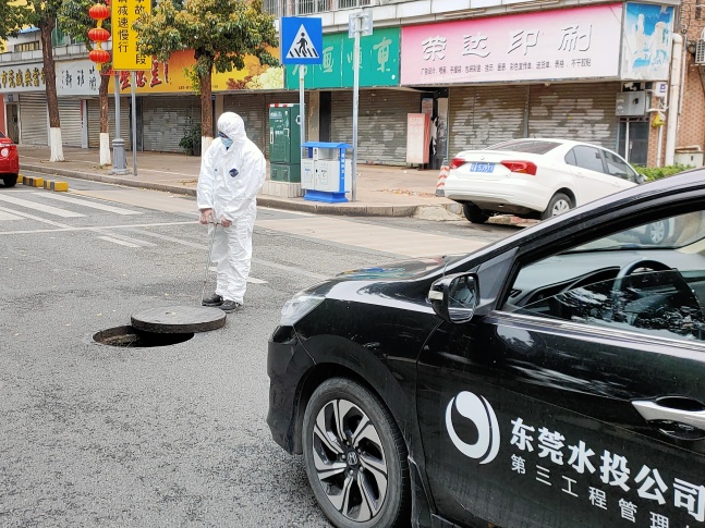 防疫期间市水务集团专项巡检队伍检查第九人民医院周边污水管网及泵站