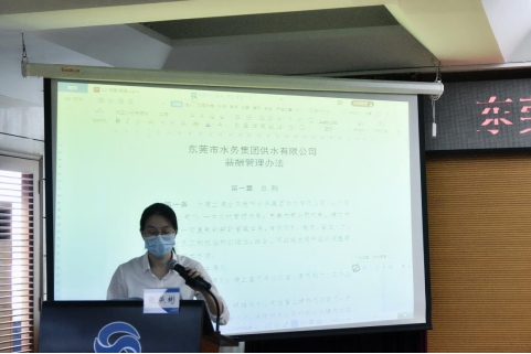 党群人事部副部长张燕彬同志讲解《东莞市水务集团供水有限公司薪酬管理办法》