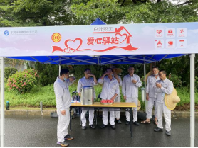 持续的高温天气给厂区内高温作业一线职工带来“烤”验,供水公司工会多措并举,为职工“花式”送清凉,出“实招”,在各水厂厂区空旷处设置“户外职工爱心驿站”,配备遮阳帐篷、清凉茶、风扇、急救药箱等,为高温作业职工提供一处歇脚处、补给站,以“小驿站”发挥“大作用”。