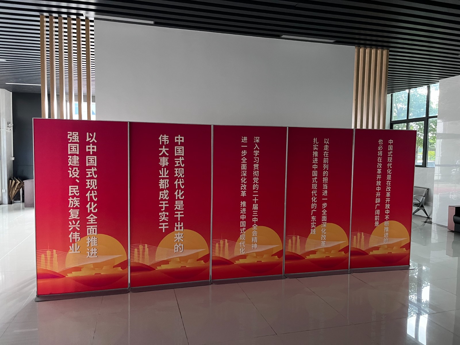 左图:科技公司布置宣传标语展